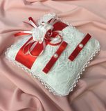 Свадебный аксессуар для колец. Был изготовлен на заказ для заказчицы из Смоленской области. Размер: 20*20 см Материалы: кружевное полотно, объемное кружево, шелковый ленты, бусины под жемчуг, холлофайбер. На заказ может быть выполнена в любом цвете на Ваш выбор. Или изготовлена по представленному Вами фото. Срок изготовления два дня. Цена указана с учётом доставки по России.