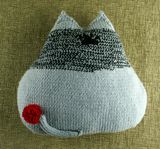 Игрушка-подушка, связанная из мягкой приятной неколючей пряжи (80% акрил, 20% шерсть), набита синтепухом. На хвосте кота задорный красный помпон. Забавная подушка-игрушка станет отличным подарком как детям, так и взрослым.