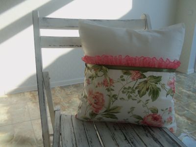 Подушка интерьерная, 40 х 40 см, Выполнена из хлопка 100%, отделка - капроновое кружево, атласные ленты, наполнитель - синтепон