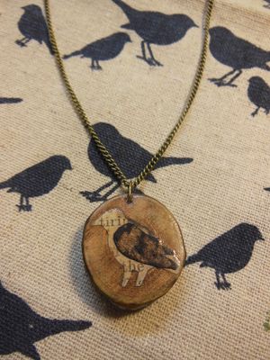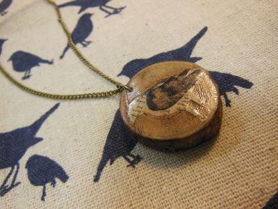 Подвеска Bird Подвеска выполнена в технике Декупаж. Сруб вяза, цепочка бронза.