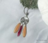 Подвеска с лепесточками розовой и желтой герберы.Размер подвески 7,5см. Фурнитура металлическая. Длина цепи 45см, замок карабин.