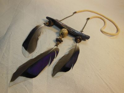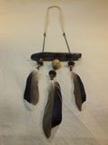 Легкая подвеска из натуральных материалов.Шнур-хлопок, перекладина-дерево обмытое морем, бусины деревянные, утиное перо.