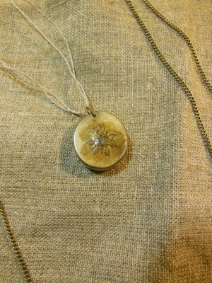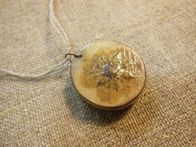 Эта нежная подвеска выполнена в технике Декупаж. За основу взят сруб вяза, под слоем лака цветок вишни. Шнур-льняная нить.