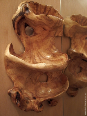 Оригинальная настенная полка из березового капа. Золотистое дерево с естественным рисунком оформлено мягкими волнами. Подойдет как для украшения прихожей, так и для хранения различных мелочей. Ваза изготовлена без применения лаков и красок. Ручная полировка дерева. Изделие существует в единственном экземпляре, повторение невозможно.