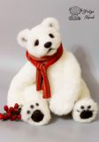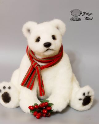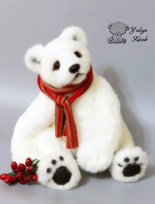 Мишка сшит из искусственного меха(тип норка). Рост сидя 35 см . рост стоя 58 см. внутри скелет, синтепух и камушки для веса. Лапы крепятся к телу при помощи дисков и шплинтов. подошвы лап сделаны из натуральной кожи. Лапы армированы, гнутся. Мишка ищет прописку в теплом уютном домике:) , готов жить под елкой:) .