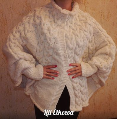 Пончо-пальто, выполню на заказ. В стоимость входит цена за пряжу. Пересылка за счет заказчика. Срок исполнения с учетом очереди около месяца. Предоплата- стоимость пряжи.