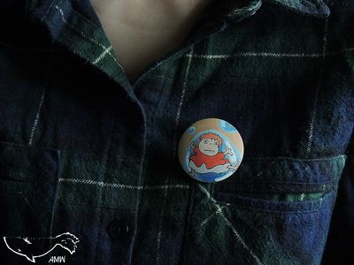 Брошь. роспись темперными красками по дереву. диаметр: 4 см