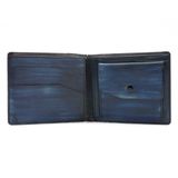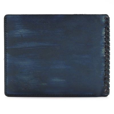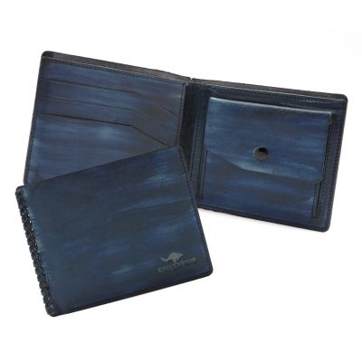 Мужское кожаное портмоне. Ручная работа. Эксклюзивная модель. Внутри одно отделение для купюр, 3 кармашка для карточек, отделение для мелочи на кнопке. Размер: 11 х 9 см Материал: натуральная кожа Цвет: темно-синий (ручная работа)