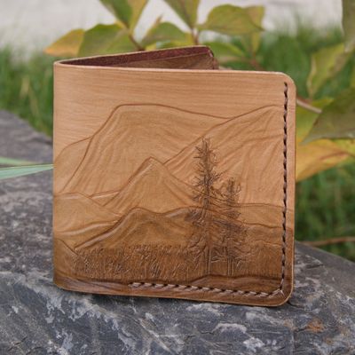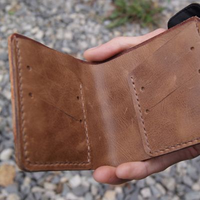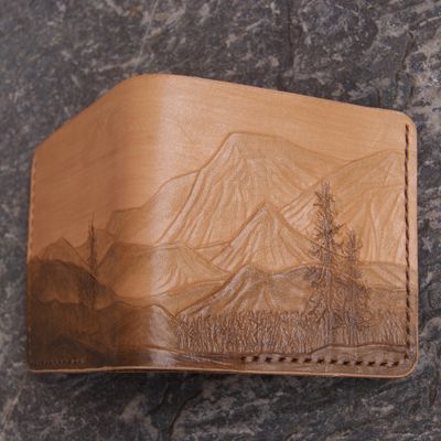 Портмоне из натуральной кожи. Лицевая сторона: кожа растительного дубления с тиснением. Внутрення часть: кожа хромового дубления. Ручная прошивка седельным швом.