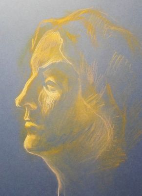 Работа выполненная на тонированной бумаге пастелью.