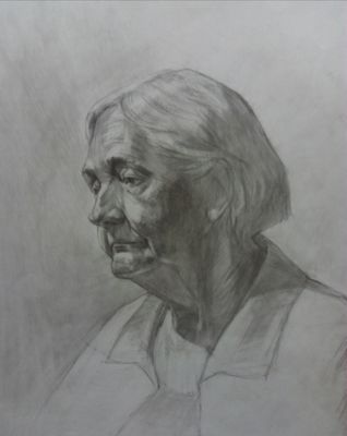 Выполнен карандашом на бумаге с объемной моделировкой головы. Сочетает в себе тональную и штриховую технику. Передано живое психологическое состояние модели.