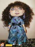Кукла сшита из бязи, набита синтепоном, роспись лица выполнена акриловыми красками, волосы из овечьих кудряшек, одежда сшита из натуральных тканей, вся съёмная. Высота куклы 35 см