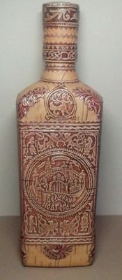 Подарочная памятная бутыль, стекло, оформлена в бересту и берестяное тиснение. Текст - по желанию заказчика.Сроки исполнения - до 2-х дней. Доставка - транспортной компанией.