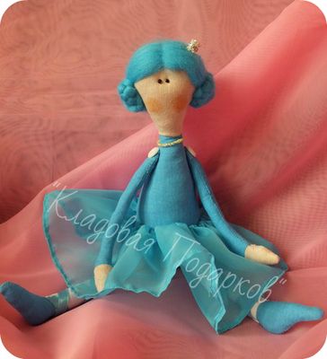 Принцесса в стиле Тильда в голубом цвете. Станет прекрасной подружкой для вашего ребенка или украшением интерьера. Выполню на заказ в любом цвете. На голове маленькая корона :) Руки и ноги подвижны, может самостоятельно сидеть или стоять.