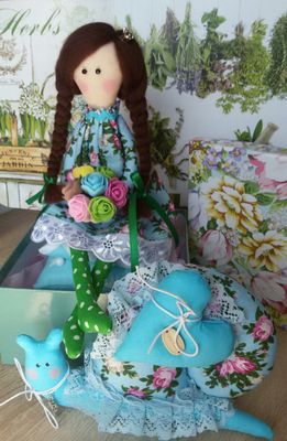 Интерьерная кукла принцесса на горошине, сидит на трех подушках, наполнитель холлофайбер, хлопок, шерсть для валяния. Прекрасное сочетание в паре с улиткой тильдой.