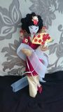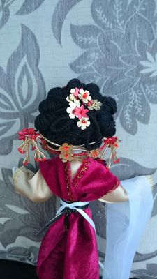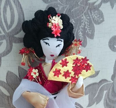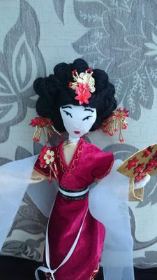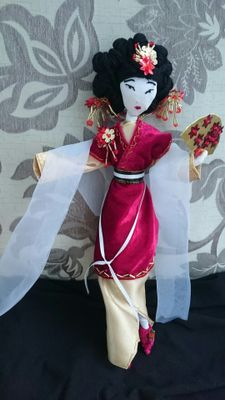Увлекшись многовековой историей Китая, решила воссоздать Принцессу династии Мин (???? 1368 — 1644 гг.) Два преобладающих цвета в оформлении - красный и золотой - были и остаются наиболее популярными среди модниц Китая. Длинные иссиня-черные волосы заколоты шпилькой и убраны в сложную прическу, украшенную золотыми цветами и нитями драгоценных бус. Лотосовые ножки - показатель высокого происхождения их обладательницы - обуты в крошечные туфельки в тон платью. Золотой веер с красными цветами не только помогает бороться с полуденным зноем, но и служит инструментом для общения без слов. В завершении, на плечи принцессы накинут легкий прозрачный шарф, показывающий воздушность и легкость походки Принцессы.