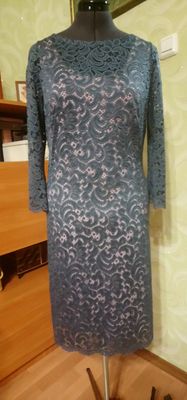 Платье из гипюра, размер 46, к нему прилагается нижнее платье из вискозы цвета пыльной розы.