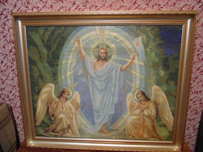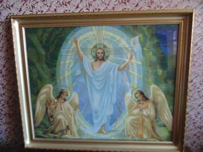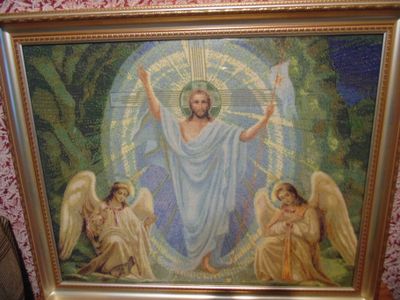 Икона "Воскресение Христово" - размер 68Х81 вместе с рамкой. Икона выполнена вручную, вышита крестиком, обрамлена дорогой рамкой, освящена в церкви.