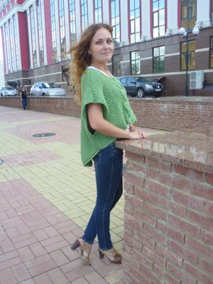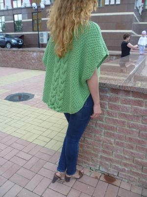 Пуловер-пончо связан спицами из полушерстяной пряжи. Креативная вещь. Вы не останетесь незамеченной. Стильное дополнение к любому образу.