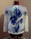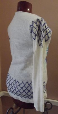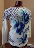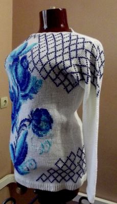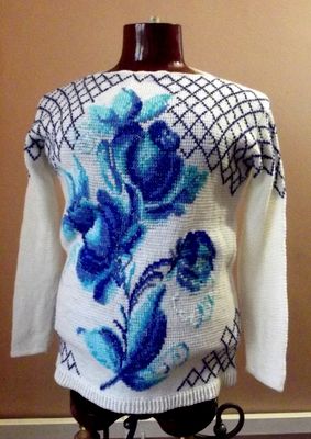 Женский пуловер выполнен в технике тунисского вязания, украшен вышивкой. Материал - тонкая полушерсть. Модель выполнена в единственном экземпляре. Длина изделия - 68см длина рукава - 57см Стирка в режиме "деликатный" или ручная, сушить в расправленном виде. Доставка по России бесплатно