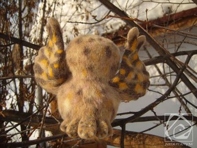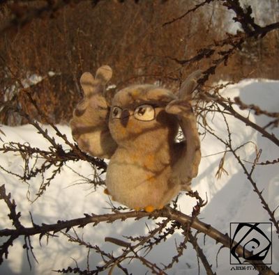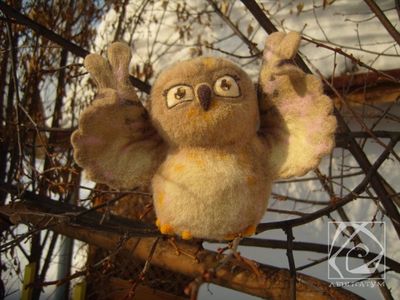 Высота Совы 13 см (с крыльями 15,5 см) Ширина Совы 8,5 см (с крыльями 18,5 см) Толщина Совы с хвостом 11,5 см Изготовлена из овечьей шерсти. Тельце и голова пушистые. Крылья на каркасе. Три "пальца" гнуться. Стоит устойчиво. Берегите от маленьких детей, так как игрушка имеет отрывающиеся детали.