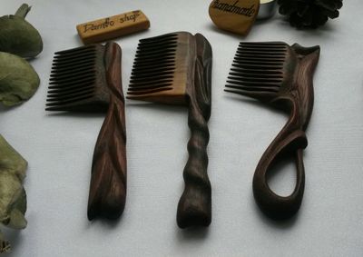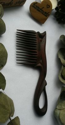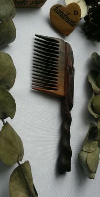 Сложно сказать, когда именно человек придумал вырезать из кусочков древесины украшения. Несомненно, это было очень давно. С тех пор технологии изготовления украшений из дерева сильно изменились,а любовь женщин к аксессуарам из дерева осталась прежней. Аксессуары из дерева актуальны во все времена года. Они радуют своей живой энергетикой, разнообразием естественных расцветок и приятной, теплой фактурой. Тепло дерева чувствует любой кто с ним соприкасается. Сегодняшняя популярность хендмейд техник не обошла стороной и аксессуары для волос. Наши деревянные расчёски для волос изготавливаются полностью вручную, тщательно шлифуются и покрываются льняным маслом. Льняное масло придает дереву естественный оттенок, выделяет рельеф и текстуру дерева. Пропитка поможет, защитит дерево от влаги и гниения. Масло закупоривает мельчайшие поры, в которые больше не просочится вода. Предмет сохраняет исходную текстуру (в отличие от лакированного дерева). Расчёска из дерева требуют особого мастерства и выглядят как настоящие произведения искусства . У деревянных расчёсок есть неоспоримое преимущество перед металлическими аналогами - они не повреждают естественную структуру волос. Каждая расчёска имеет свою неповторимую и уникальную текстуру, созданную природой и форму, созданную мастером. © https://www.livemaster.ru/item/25724419-suveniry-i-podarki-rascheska-derevyannaya-reznaya-s-ruchkoj Наш instagram: dambo_shop_07 ,wood_shop_07