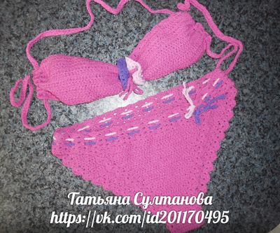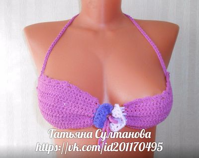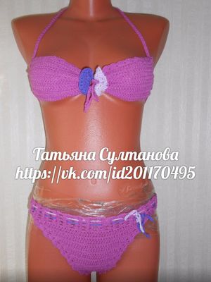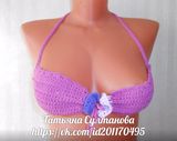 Раздельный купальник связан крючком из стрейч каттона.Размер лифа регулируется.
