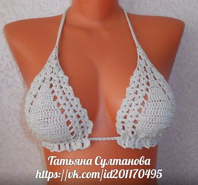 Раздельный купальник связан крючком из стрейч бамбука.Лиф № 2.