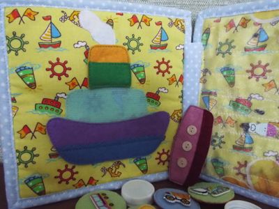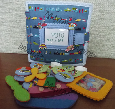 Готовая работа! Я предлагаю вам интересную и увлекательную книжку. Удобный формат для ребенка от 1.5 до 4 лет 20 на 20 см. С книжкой ребенку будет интересно играть, а также обучаться навыками повседневной жизни, т.е. застегивать и расстегивать молнии, кнопочки; откручивать и закручивать винтовые соединения и многое другое... Книжка развивает мелкую моторику и расширяет кругозор ребеночка. Описание: Книжка развивающая "Транспорт" состоит из 4 листов, 6 страниц игровых и 2 странички обложка. Наполнитель поролон. Использованы разные виды кнопок, липкая лента, винтовые соединения, застежка молния. 1 стр - обложка с рамочкой для фото и объемные пуговки 2 стр - ракета (люк на кнопке-открывается), летающая тарелка двигается по шнурочку 3стр - вертолет (винты крутятся, съемные на кнопках) 4 стр - Игра "Найди пару" 16 парных элементов съемные на магнитных кнопках. Также можно играть в игру "Memory" переворачивая карточки. 5 стр - Грузовик (кузов на липучке в виде Искалочки, колеса откручиваются) 6 стр - Пароход (на липучке в виде пирамидки состоит из 3 частей) 7 стр - Лабиринт Морской (с рыбками) 8 стр - Карман на молнии для съемных деталей Доставка почтой по России оплачивается отдельно!