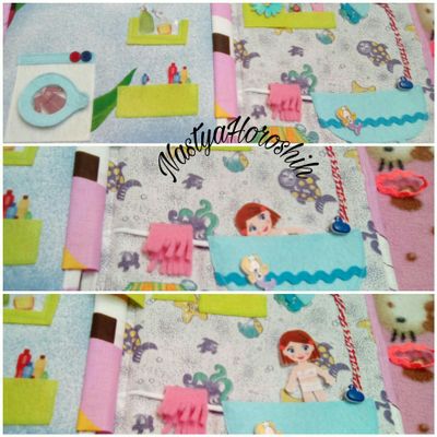 У каждого ребенка должна быть яркая, позитивная, развивающая мягкая книжка! Очень нужный и полезный подарок для вашего малыша или малышки! Ее невозможно порвать, как бумажные книжки. Она не травмирует Вашего ребенка острыми уголками! Мягкую книжку можно почистить или постирать, если она запачкалась! Она подарит Вашему ребенку те тактильные ощущения, которые нельзя передать через бумажные или электронные носители информации. С помощью развивающих страничек Вы можете давать ребенку задания, обучать его, придумывать истории. Книжка состоит из 6 игровых страниц + 2 обложки, 4 листов 20*20см. Закрывается книжка на пуговицу. Игрушка развивает: -мелкую моторику, -сообразительность, -пространственное воображение, -логическое мышление, -внимание, -математические и творческие способности, - усидчивость.