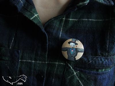 Брошь. роспись темперными красками по дереву. диаметр: 4 см