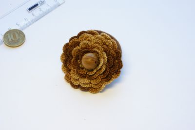 Резинка для волос "Цветок". Материал: мулине, деревянная бусина. Размер: диаметр 5,5 см