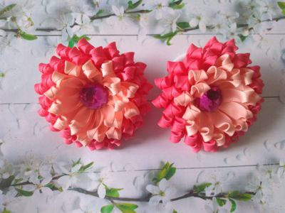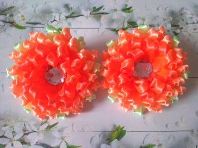 Резиночки выполнены из репсовой и атласной ленты и украшены большой полубусиной. Диаметр цветка 8 см. Цена указана за пару. Рекомендации по уходу не мочить, не стирать, не носить под головной убор, не спать в изделии.