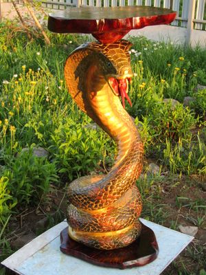 Резной столик.Ручная,штучная работа"Кобра" материал -сувель берёзы,тополь.Высота 92см.