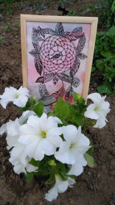 Отличный подарок любимому человеку или просто милое дополнение вашего интерьера. Предлагаю работы, изготовленные в стиле зентангл, дудлинг, зенарт. В оформлении я использую обычную бумагу, гуашь, чёрную гелевую ручку, иногда блёстки. Работа в рамке под стеклом.