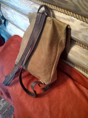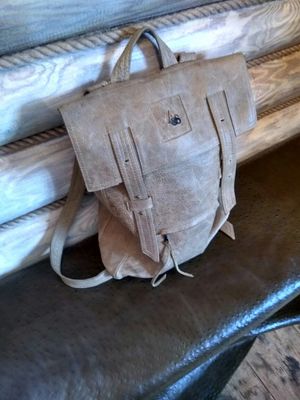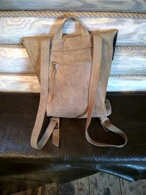 Материал: натуральная кожа-буйвол. Размеры:41x31x7(ВxШxГ). Необычная форма .Задняя и передняя часть карман молния.Без подкладки,внутренний накладной карман.