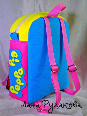 НОВИНКА И ХИТ ЭТОГО СЕЗОНА!!! Хочу порадовать маленьких фанатов "Свинки Пеппы",для них появились невероятно яркие и вместительные рюкзачки со съемной игрушечкой!!! Высота такого рюкзачка целых 28см а ширина 22см.,он имеет регулирующиеся лямки и полностью на подкладке,сама свинка крепится с помощью кнопок!!! Так же по желанию изготовим рюкзак в любом цвете и с любым другим мульт-персонажем)))