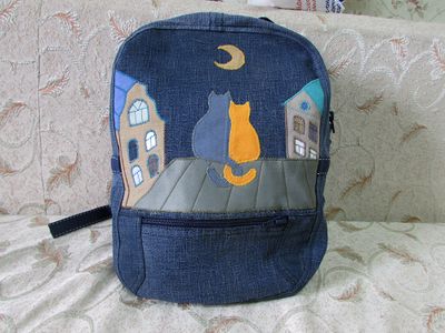 Надоели сумки, которые разваливаются на следующий же день? Рюкзачок сшит из плотной джинсы, по-настоящему добротные швы и качественная фурнитура - прослужит долго! Рисунок - тканевая аппликация, каждая деталь выполнена на совесть и крепко пришита к основе.