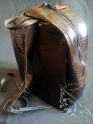 Выполнен из натуральной кожи PU*, толщина 2,1-2,2 мм, российского производства. Кожа-компаньон красная, лаковая, 1,2-1,4 мм итальянского производства. Лямки регулируемые до 82 см. Габариты 32*28*12 Съемный брелок в виде глаза рептилии. Подкладка из прочной ткани (габардин) коричневого цвета. Одно основное отделение на молнии, имеется внутренний карман на молнии, вместительный карман на передней стенке. * PU кожа- это высокотехнологичный материал нового поколения. После расслоения кожи на второй (не лицевой слой) наносится полимер, эта кожа приобретает ряд полезных свойств, что дает ей неоспоримые преимущества над натуральной кожей, такие как: — высокая износоустойчивость — лишена вредных добавок, PU кожа — экологична — имеет приятные тактильные свойства — устойчива к износу по сравнению с обыкновенной кожей — PU кожа не растягивается и не трескается — устойчива к действию низких и высоких температур