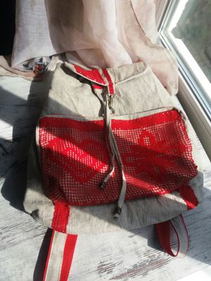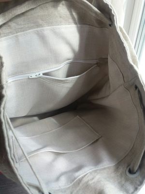 Льняной стёганый рюкзак в этно стиле , с аппликацией из кружева. Накладной карман на молнии, на одно отделение с двумя карманами внутри . Дно уплотнено дублерином. Размеры: 38*34 см , длина лямок - 85 ( регулируется )