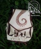 Выполнен из натуральной кожи, толщина 1,4-1,6 мм, итальянского производства. Лямки кожаные, регулируемые до 72см, усилены стропой. Габариты 36*28*15 Украшения: плетеный кожей узор фрактал с использованием бусин (имитация жемчуга), металлические эглеты. Подкладка из прочной ткани шоколадного цвета. Одно основное отделение, имеется внутренний карман на молнии, кожаный шнур с карабином для ключей. Клапан фиксируется замком-кнопкой, на передней стенке двойные карманы на замках-кнопках.