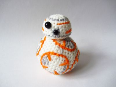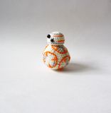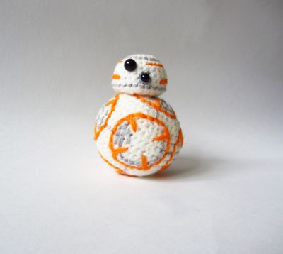Вязаный робот ВВ-8 по мотивам фильма «Звездные войны. Пробуждение силы». Основной цвет белый, присутствуют вставки оранжевого и серебристого цветов, а также чёрный окуляр на голове. Высота 8 см. Доставка входит в стоимость. Рекомендация по уходу: сухая чистка.