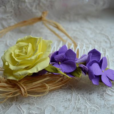 Цветочный аксессуар в виде гребня для волос,с розой и гортензией, подарит образу нежность и романтичность! Материал цветов пластичная замша, приятная на ощупь, не токсичная. Цветы из нее получаются реалистичными и радуют свою обладательницу, очень долгий период. Индивидуальная работа с каждым клиентом!