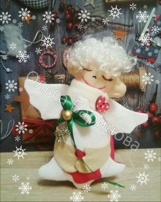А у меня новый Рождественский ангелочек, стоит самостоятельно, выполнен из хлопка, рост около 15 см, в ручках колокольчик, один из символов Рождества и Нового года. Дарите близким душевные подарки