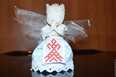 Ангелы – добрые духи, защитники, обереги, помощники в делах. Образы ангелов – особенные домашние обереги. Ими можно украсить дом, подарить близким и друзьям по любому поводу. Но какую-то особую теплоту и силу образы ангелочков приобретают для нас в новогодние и, конечно же, рождественские праздники. У моего ангелочка на фартучке вышит сильнейший оберег "Рожаница". Рожаницы - древнеславянские женские божества, спутницы бога Рода. Олицетворение женского животворящего начала и великого таинства природы. Символ женского плодородия. Рожаница защищала маму и малыша от сглаза и злых людей, от колдовства и так далее. Она сопровождала женщин всю жизнь, и была у наших предков самым уважаемым и важным символом!