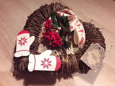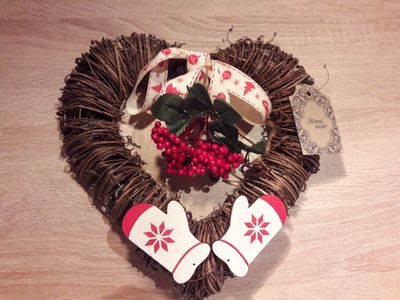 Чудесный декорированный венок в виде сердца из ротанга!