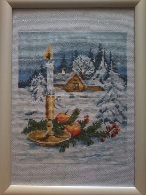 Вышитая картина "Рождество". Выполнена в технике крест, нитками Гамма, на канве Аида с люрексовой ниточкой. Умиротворенность, состояние покоя и тихого семейного праздника.