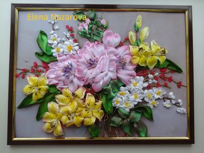 Картина из лент ручной работы 30*40, ручная тонировка, оформлена в багет, вышлю в любой уголок мира.