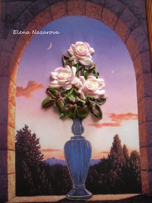 Картина из лент ручной работы 30*45, оформлена в деревянную рамку. Отправлю почтой в любой уголок мира.