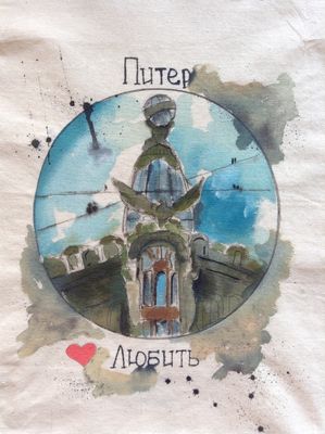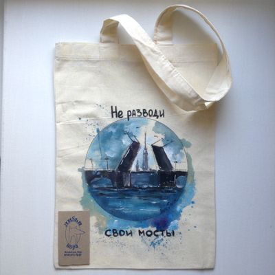 Исключительно ручная роспись экосумочек,имитирующая акварельную живопись! Авторский принт